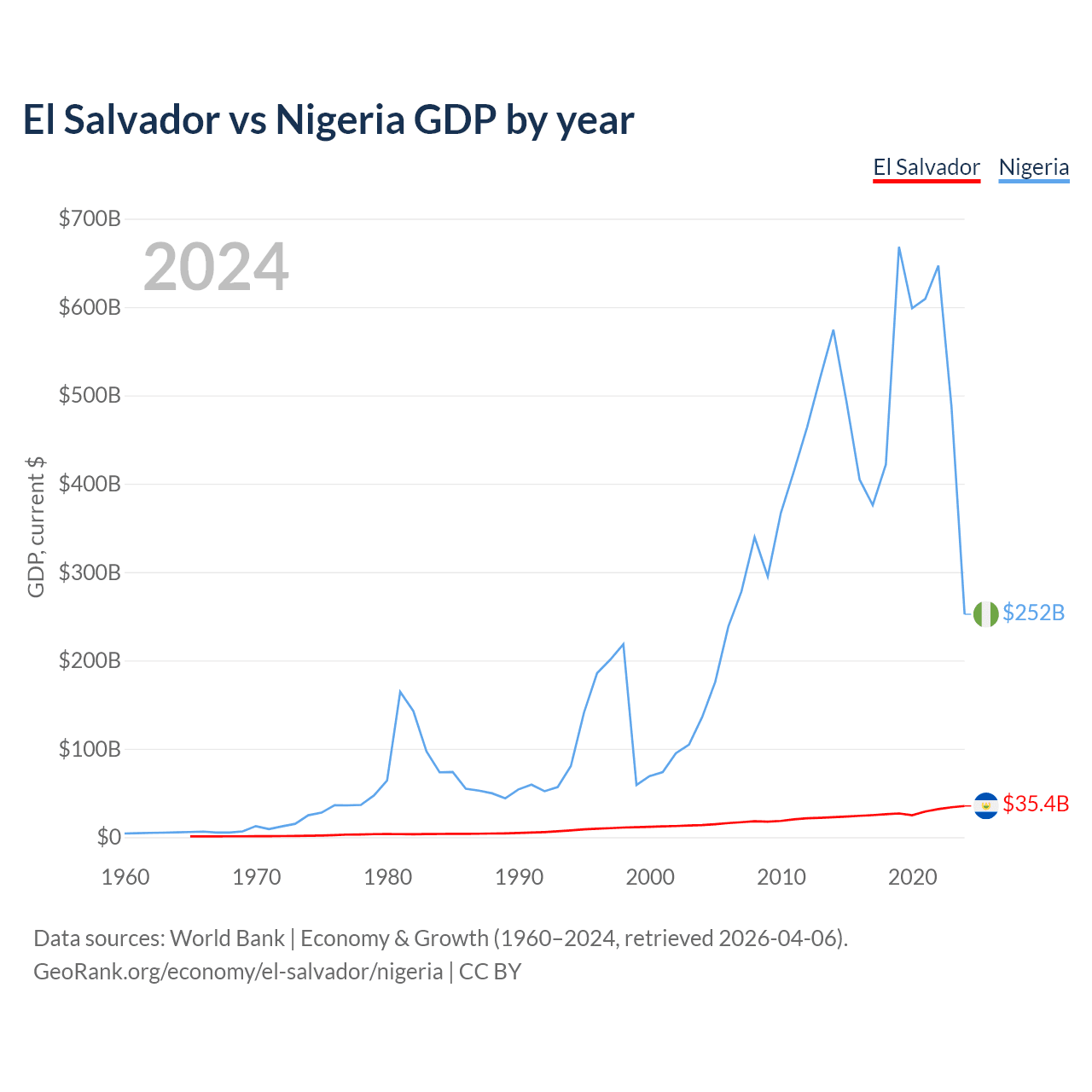 El Salvador vs Nigeria GDP by year