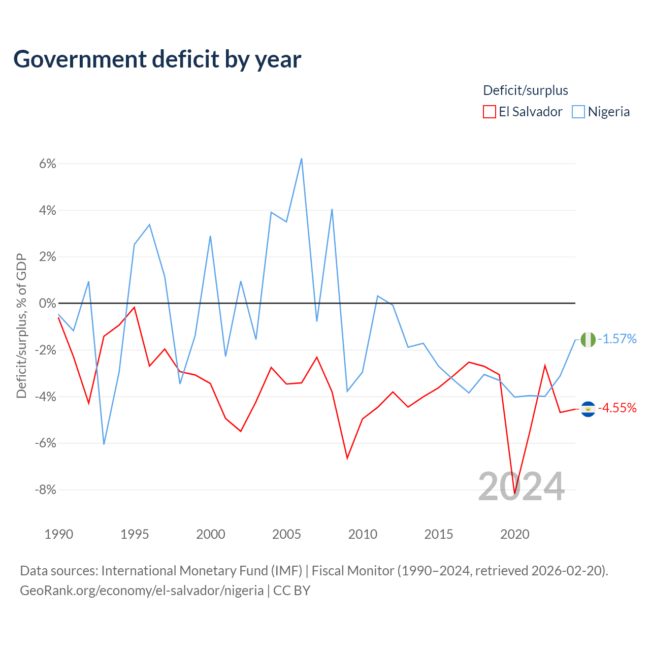 - International Monetary Fund (IMF) | Fiscal Monitor (1990–2024, retrieved 2026-02-20)