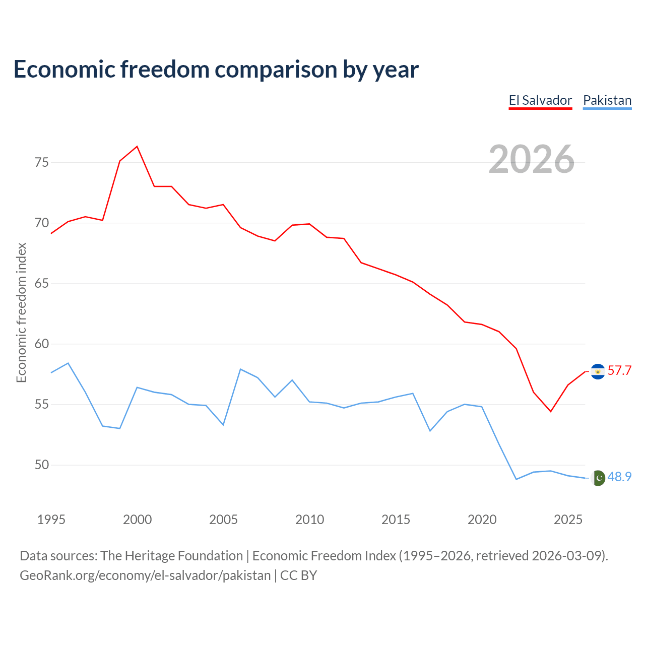 Data sources: The Heritage Foundation | Economic Freedom Index (1995–2026, retrieved 2026-03-09).