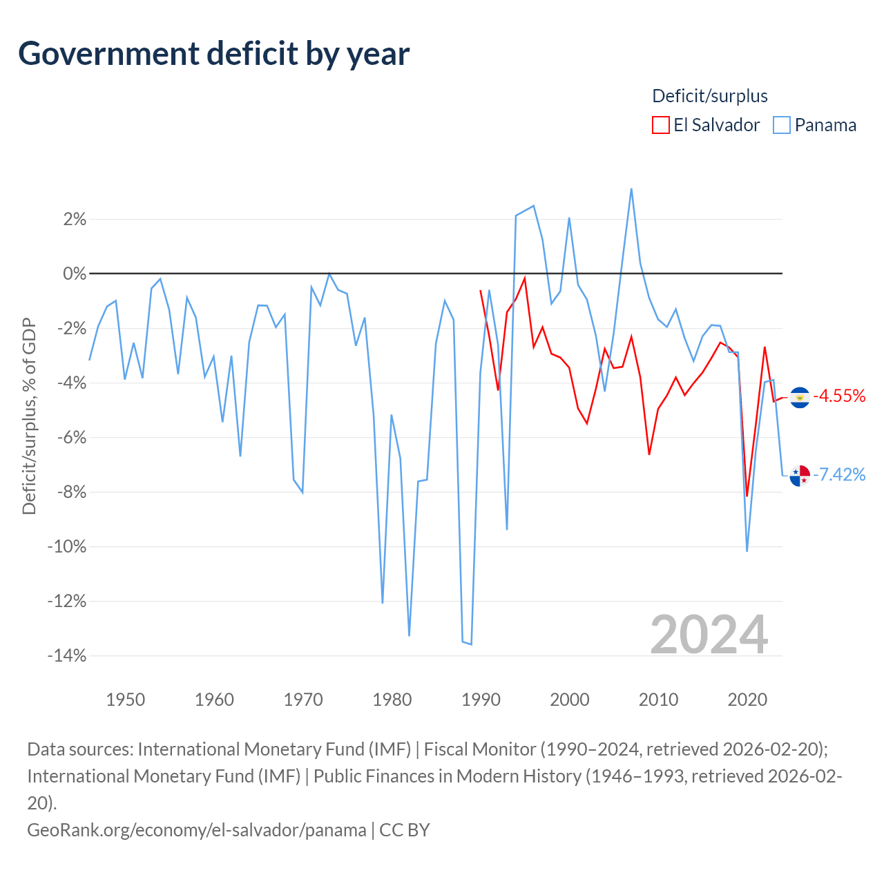 - International Monetary Fund (IMF) | Fiscal Monitor (1990–2024, retrieved 2026-02-20)