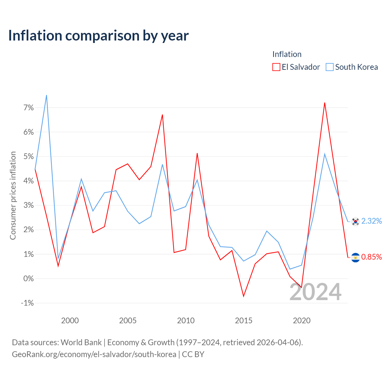 El Salvador vs South Korea GDP by year