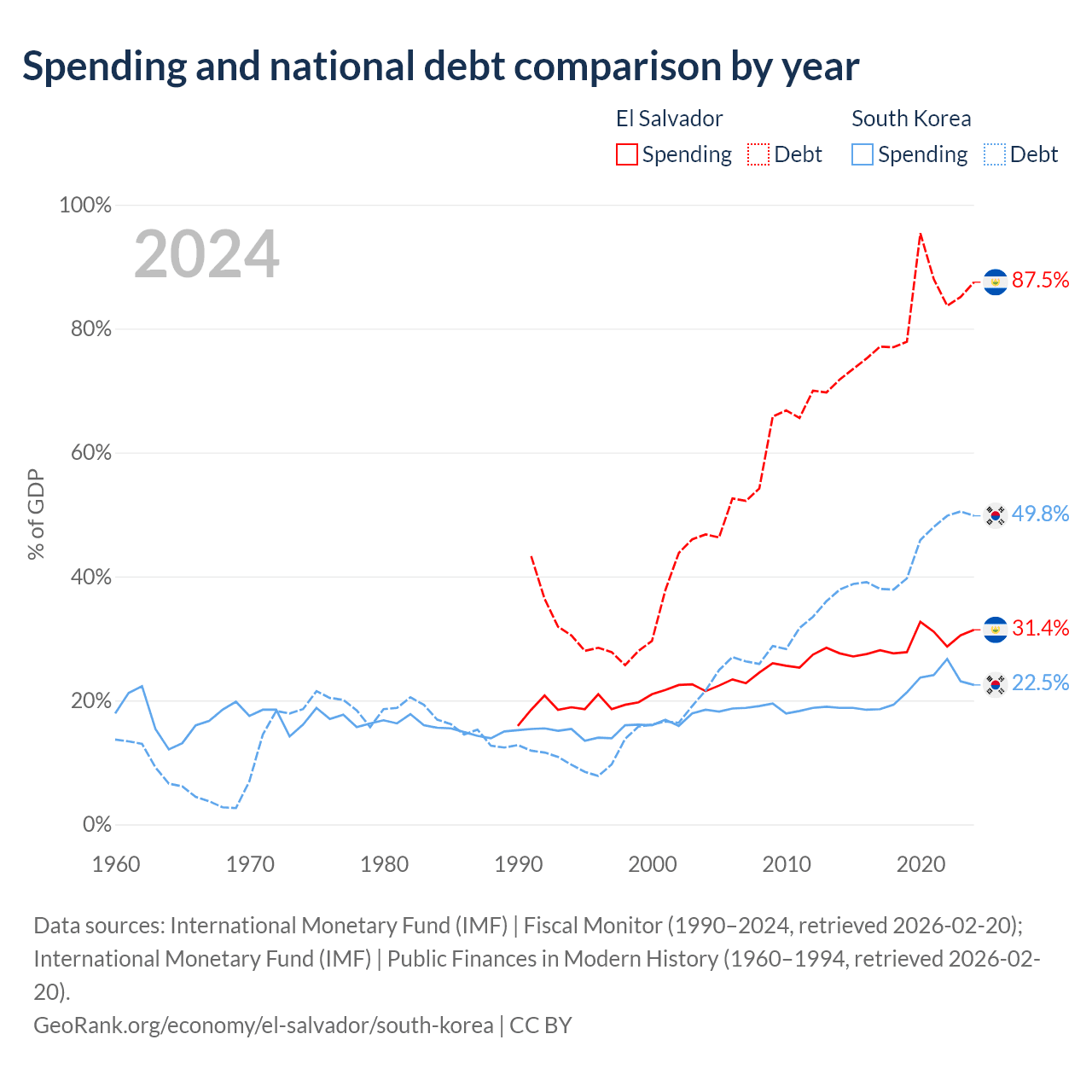 El Salvador has $30.9B in government debt (87.5% of GDP), compared to $934B (49.8% of GDP) in South Korea.