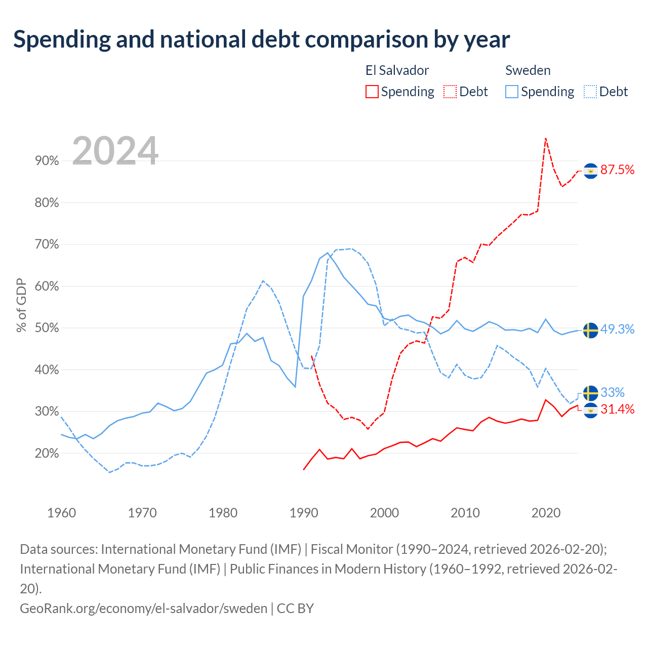 El Salvador has $30.9B in government debt (87.5% of GDP), compared to $199B (33% of GDP) in Sweden.