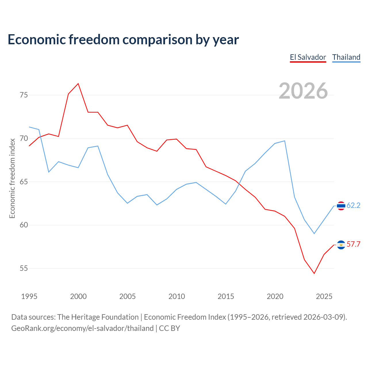 Data sources: The Heritage Foundation | Economic Freedom Index (1995–2026, retrieved 2026-03-09).