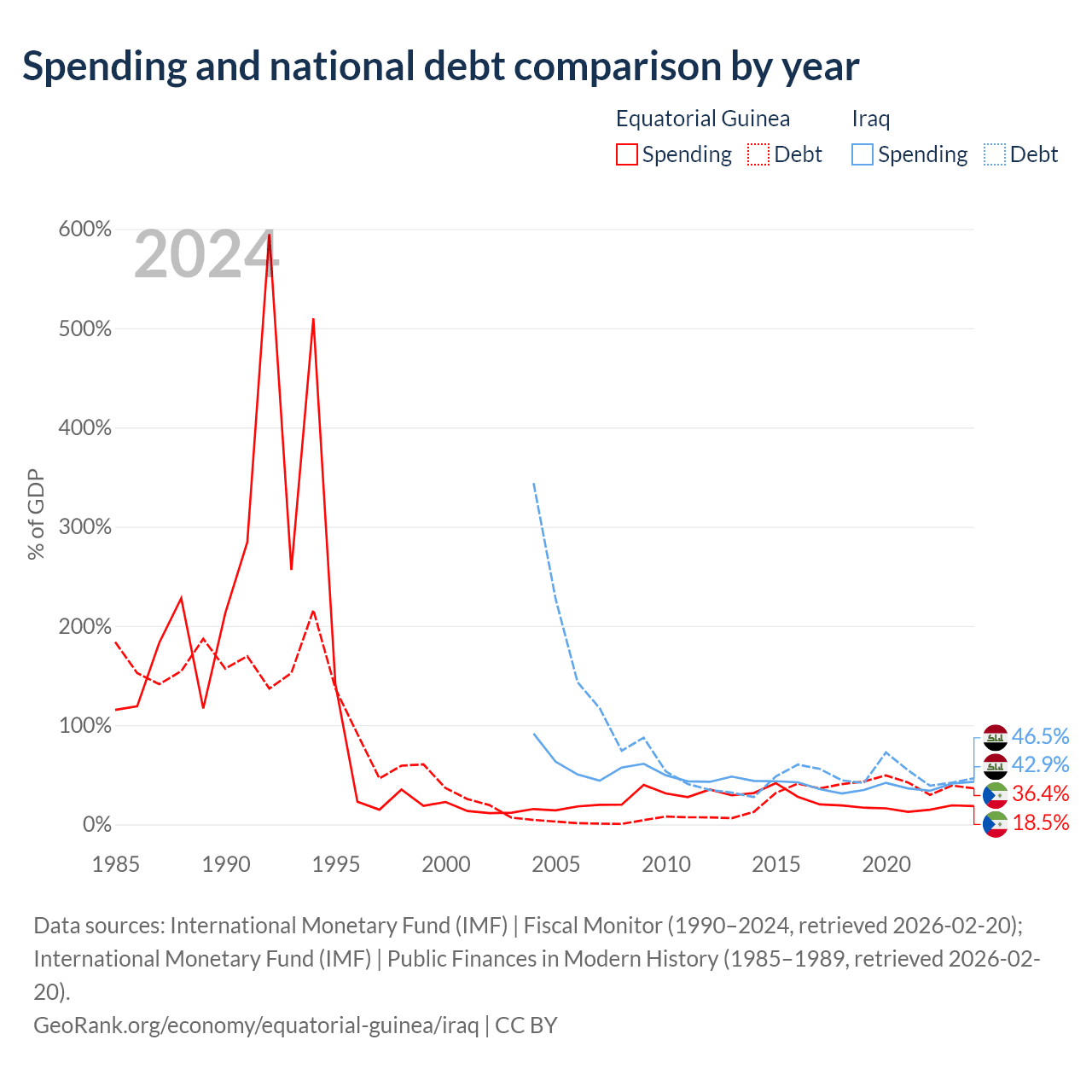 Equatorial Guinea has $4.65B in government debt (36.4% of GDP), compared to $130B (46.5% of GDP) in Iraq.