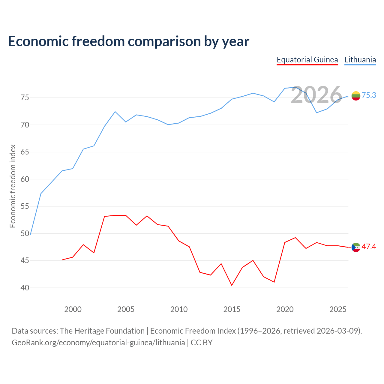 Data sources: The Heritage Foundation | Economic Freedom Index (1996–2026, retrieved 2026-03-09).