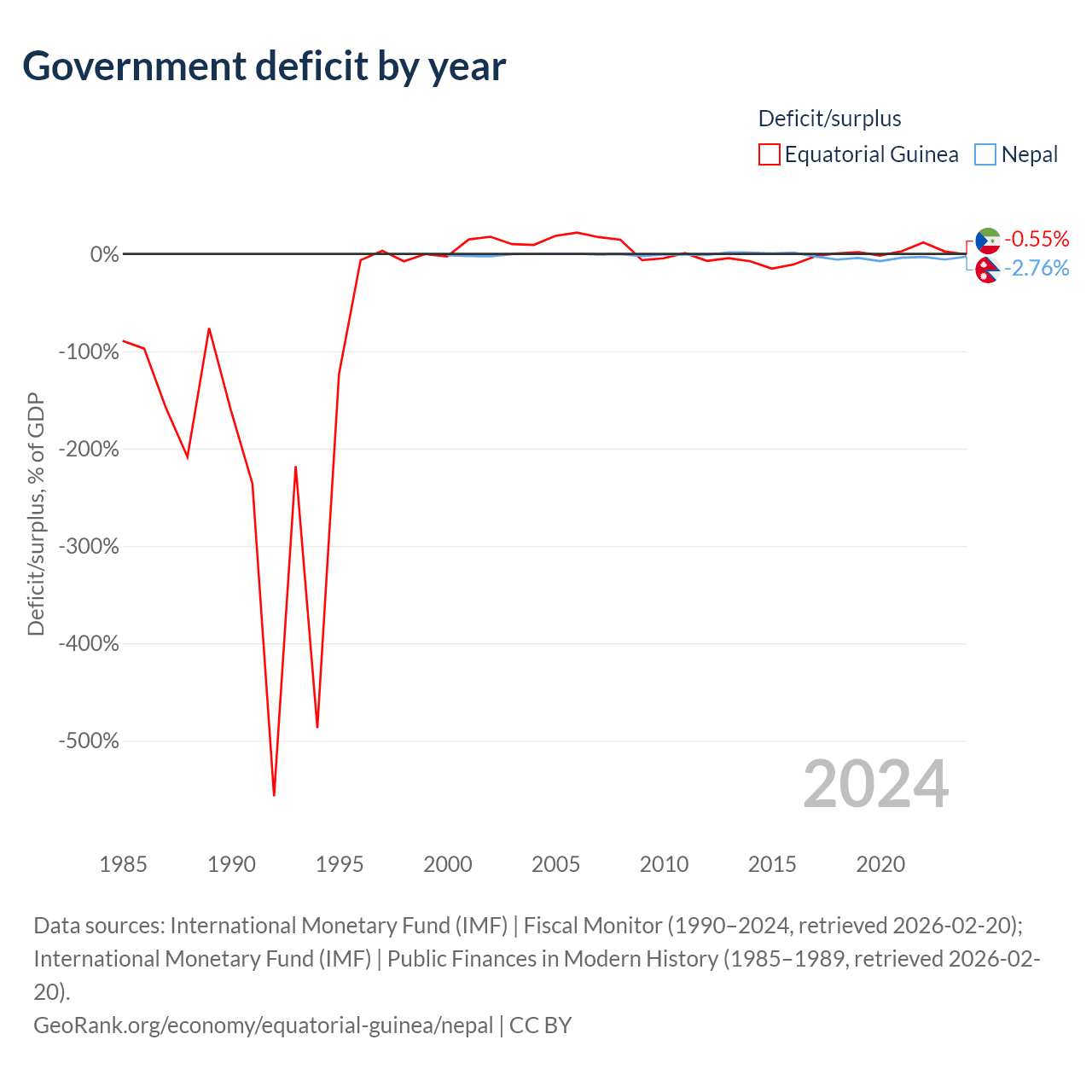 - International Monetary Fund (IMF) | Fiscal Monitor (1990–2024, retrieved 2026-02-20)