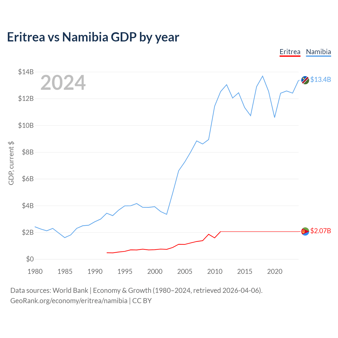 Eritrea vs Namibia GDP by year