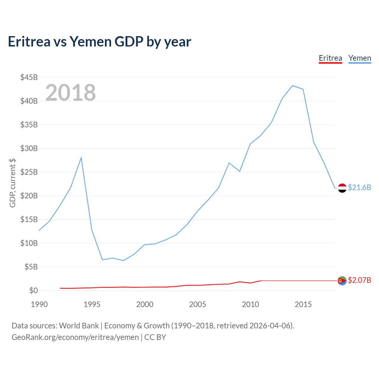 Eritrea vs Yemen GDP by year