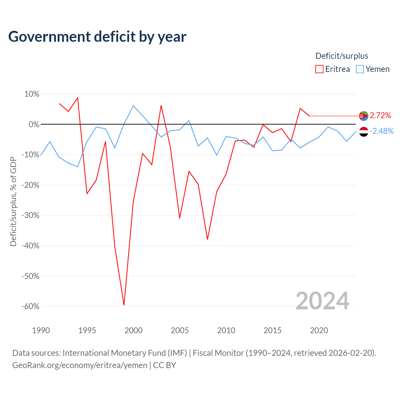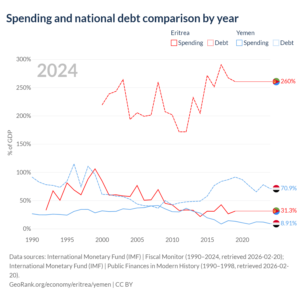 - International Monetary Fund (IMF) | Fiscal Monitor (1990–2024, retrieved 2026-02-20)
