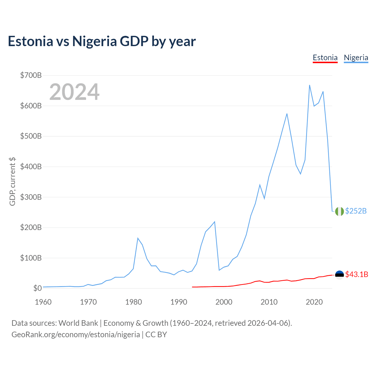 Estonia vs Nigeria GDP by year