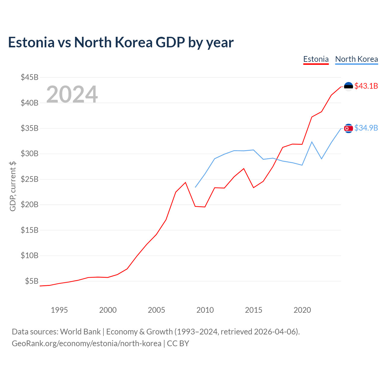 Estonia vs North Korea GDP by year