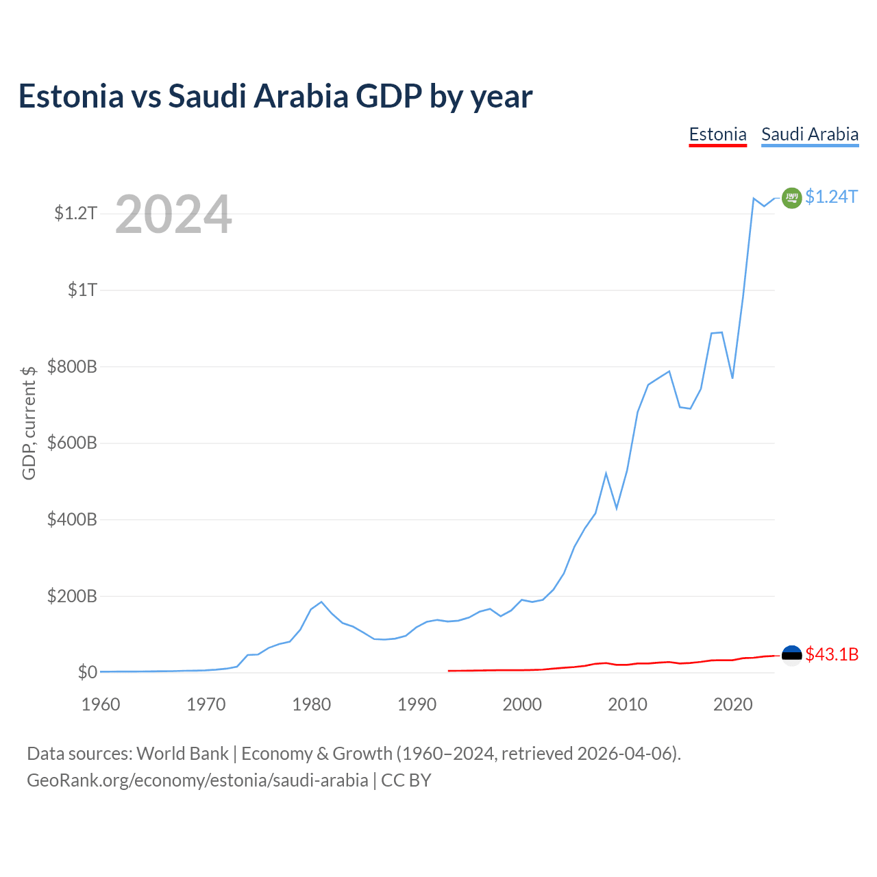 Estonia vs Saudi Arabia GDP by year
