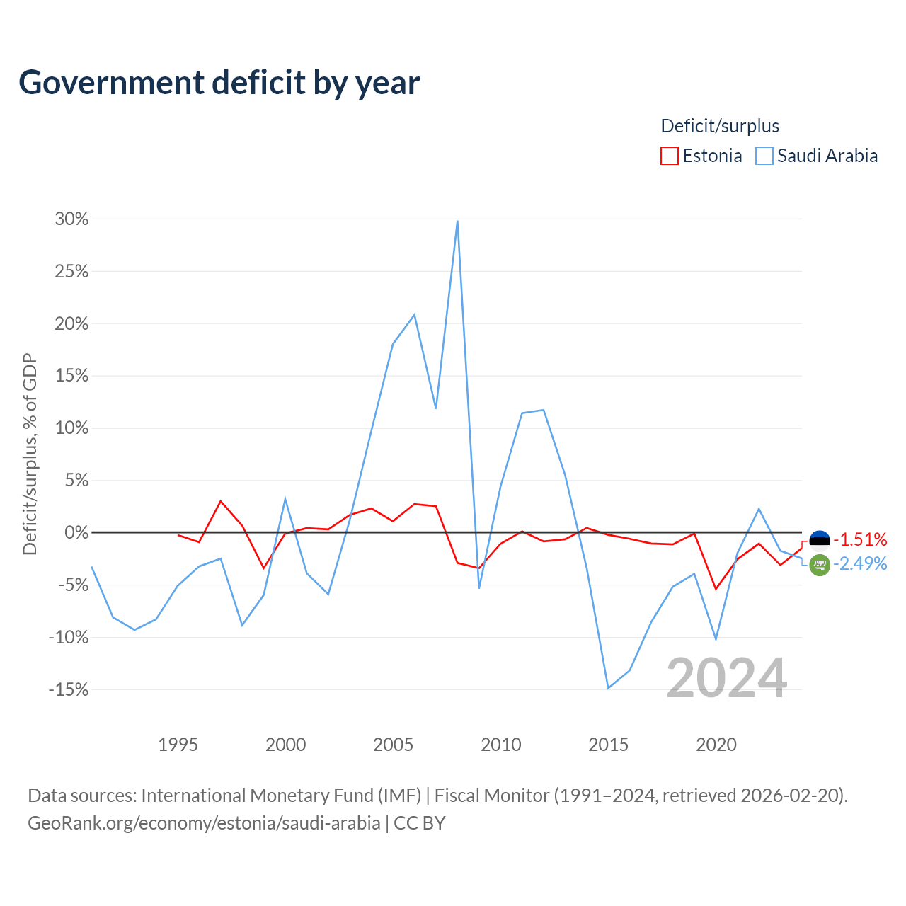 - International Monetary Fund (IMF) | Fiscal Monitor (1990–2024, retrieved 2026-02-20)