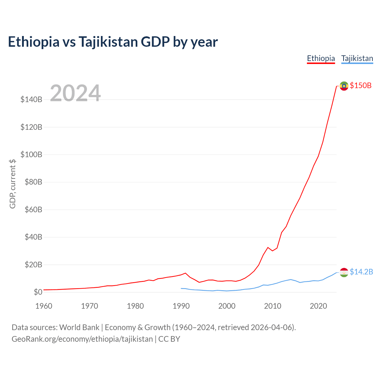 Data sources: World Bank | Economy & Growth (1960–2024, retrieved 2026-04-06).