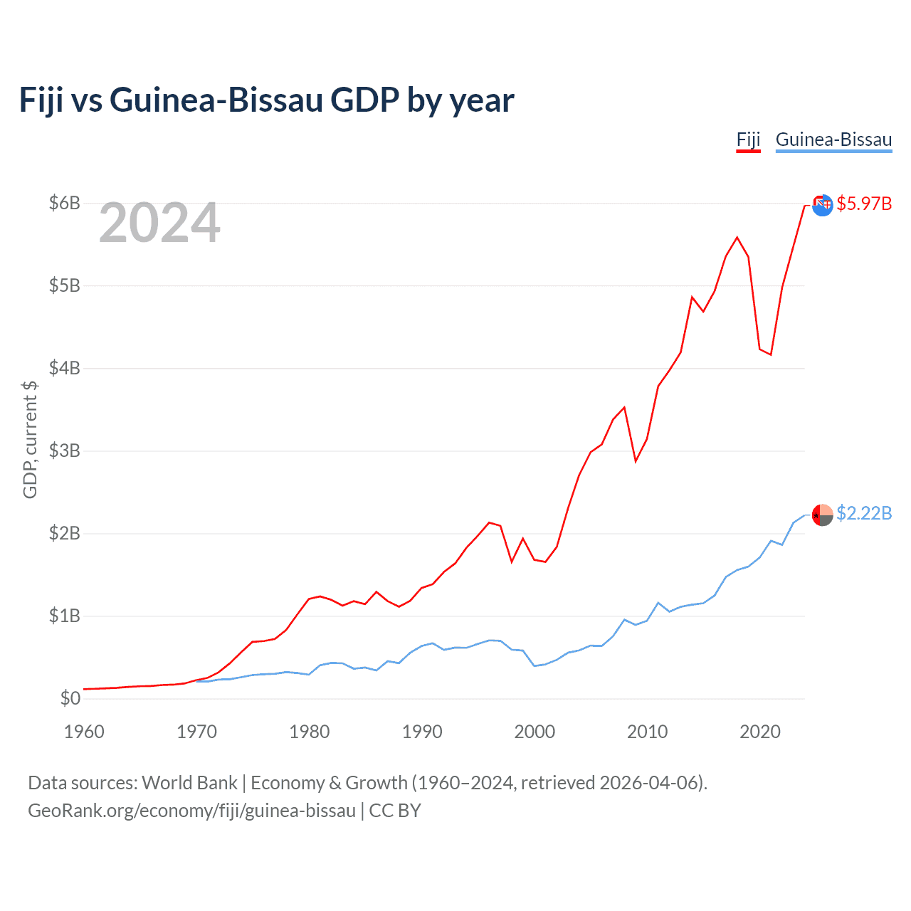 Fiji vs Guinea-Bissau GDP by year