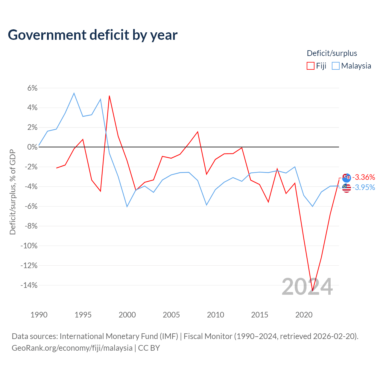 - International Monetary Fund (IMF) | Fiscal Monitor (1990–2024, retrieved 2026-02-20)