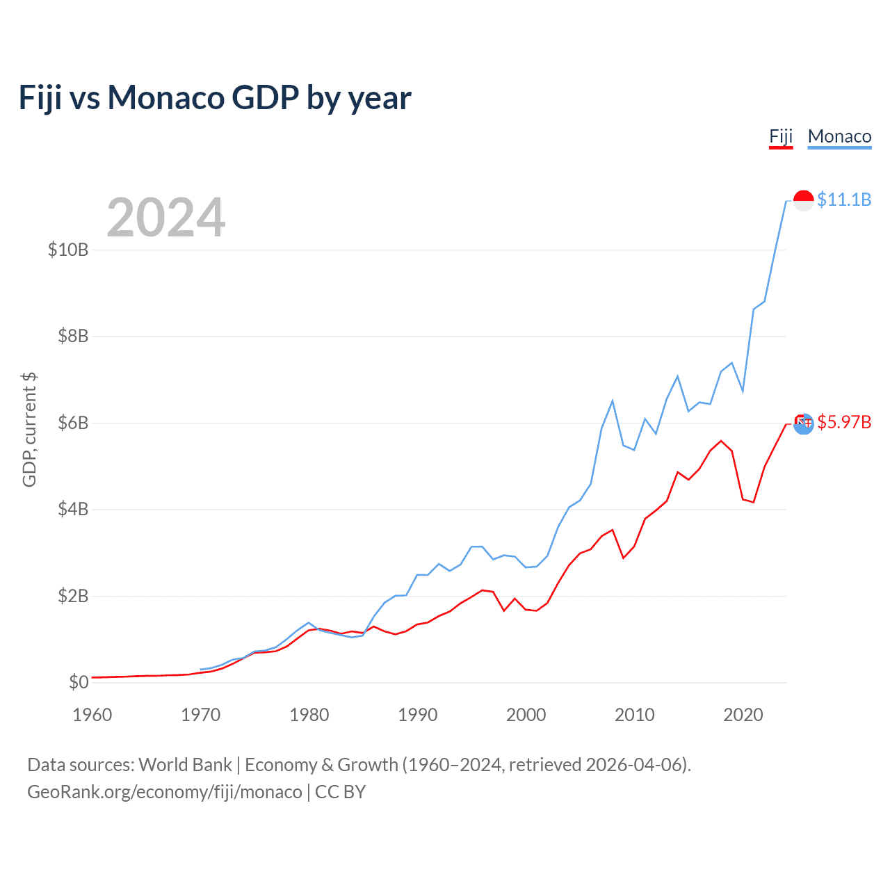 Fiji vs Monaco GDP by year