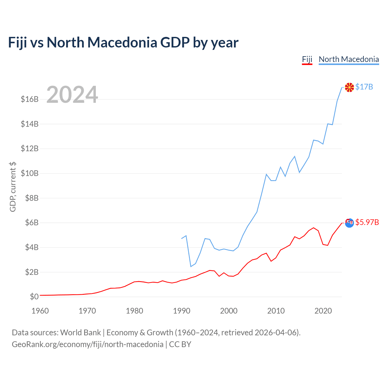 Fiji vs North Macedonia GDP by year