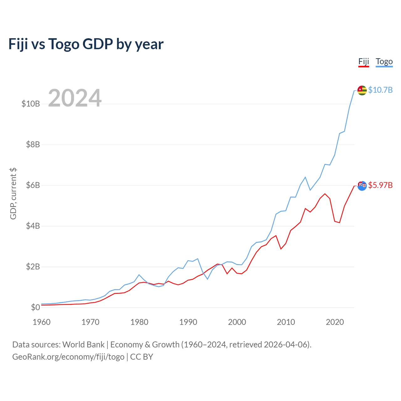 Fiji vs Togo GDP by year