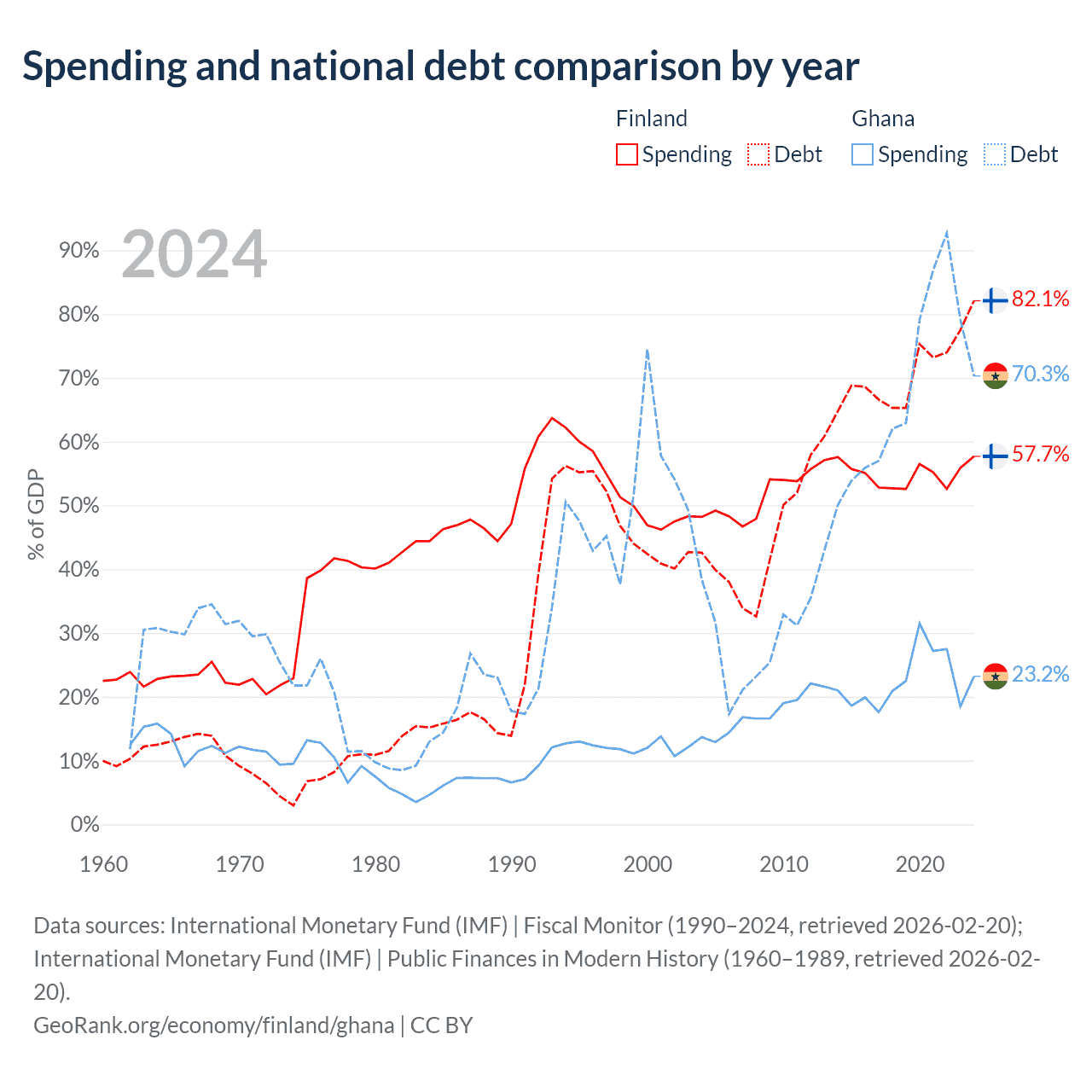 Finland has $245B in government debt (82.1% of GDP), compared to $57.9B (70.3% of GDP) in Ghana.