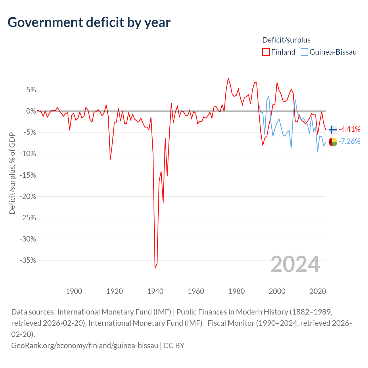 - International Monetary Fund (IMF) | Public Finances in Modern History (1882–1996, retrieved 2026-02-20)