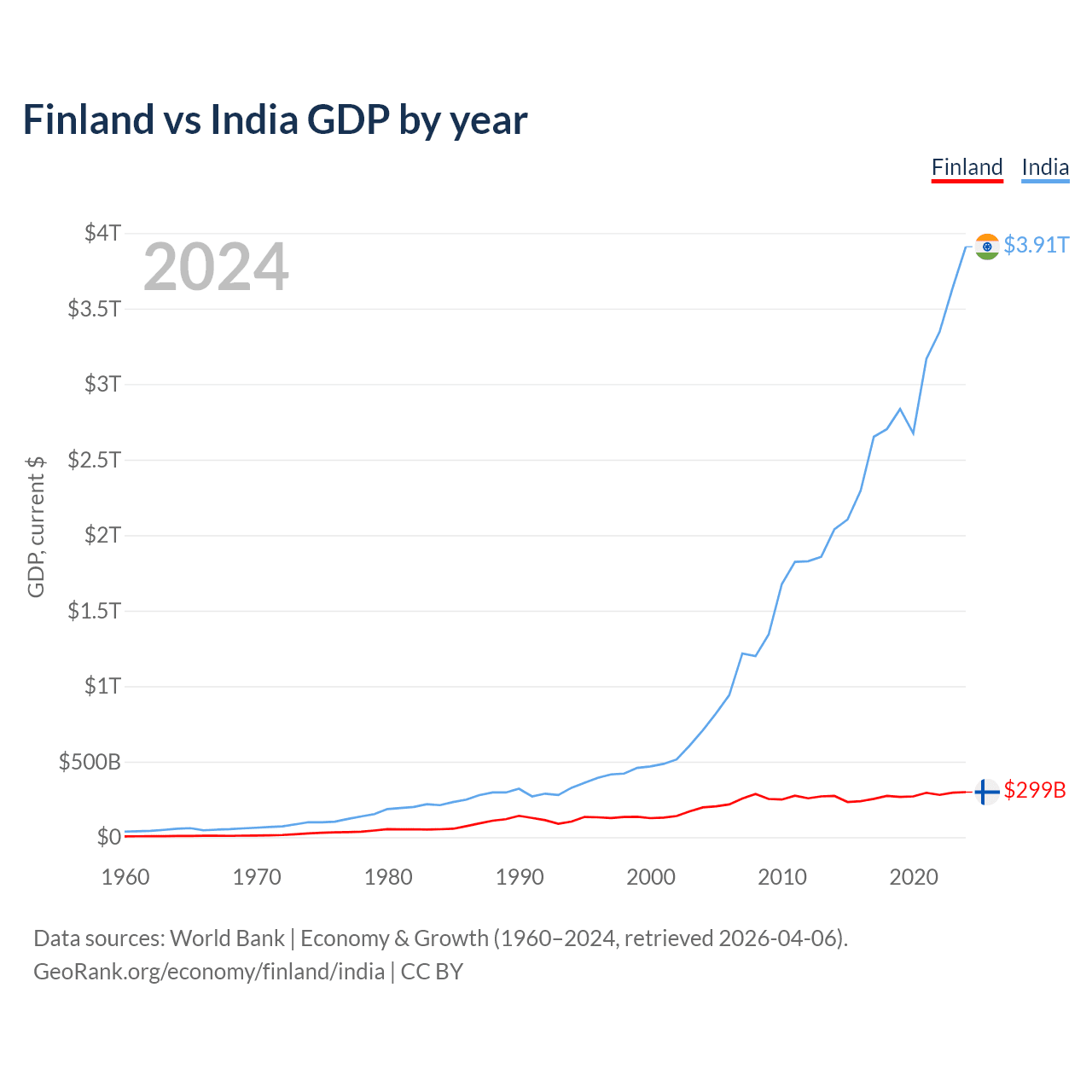Finland vs India GDP by year