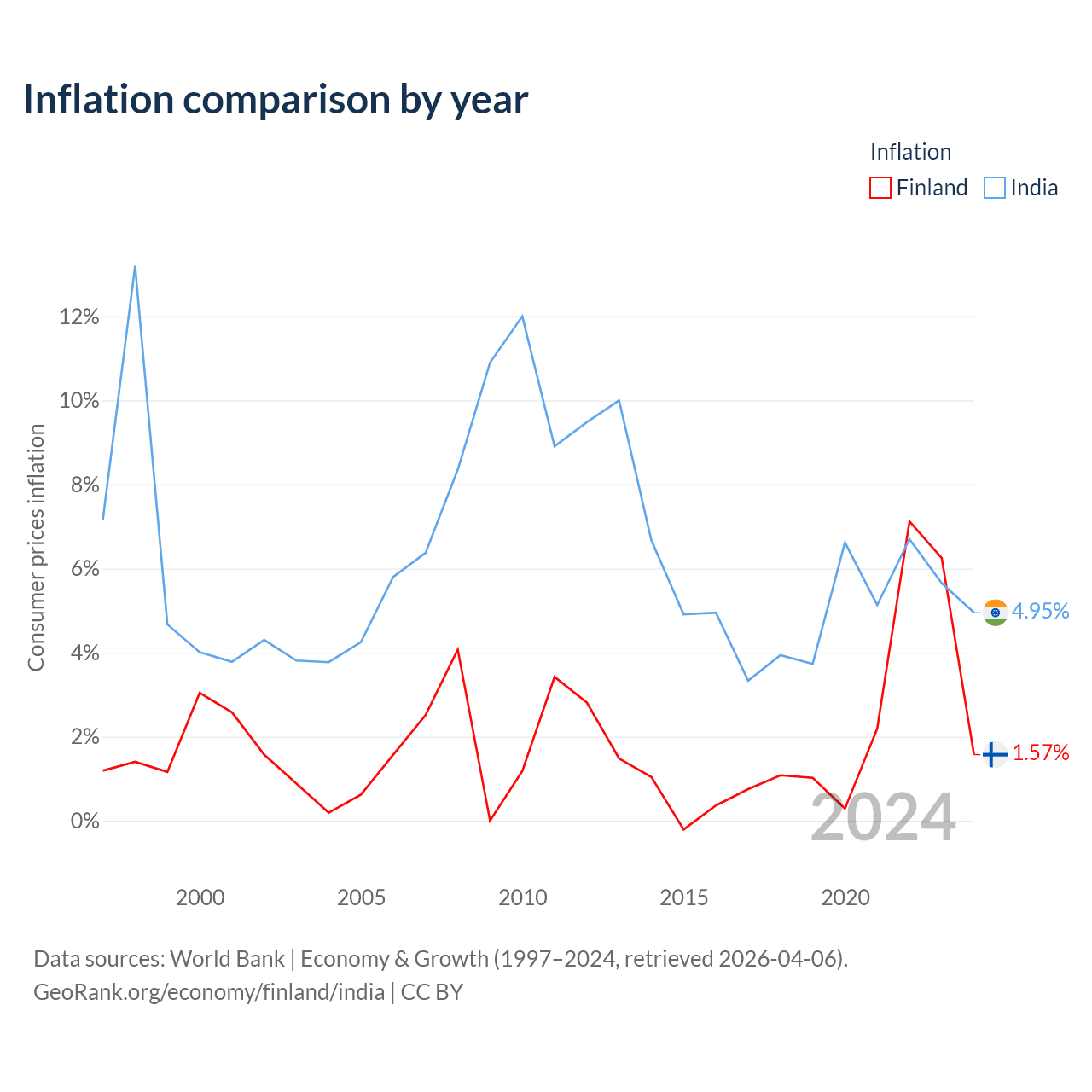 Data sources: World Bank | Economy & Growth (1960–2024, retrieved 2026-04-06).