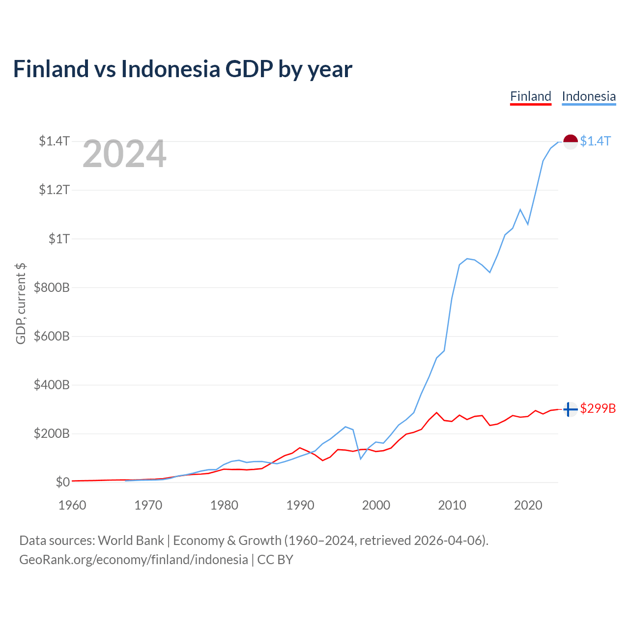 Finland vs Indonesia GDP by year