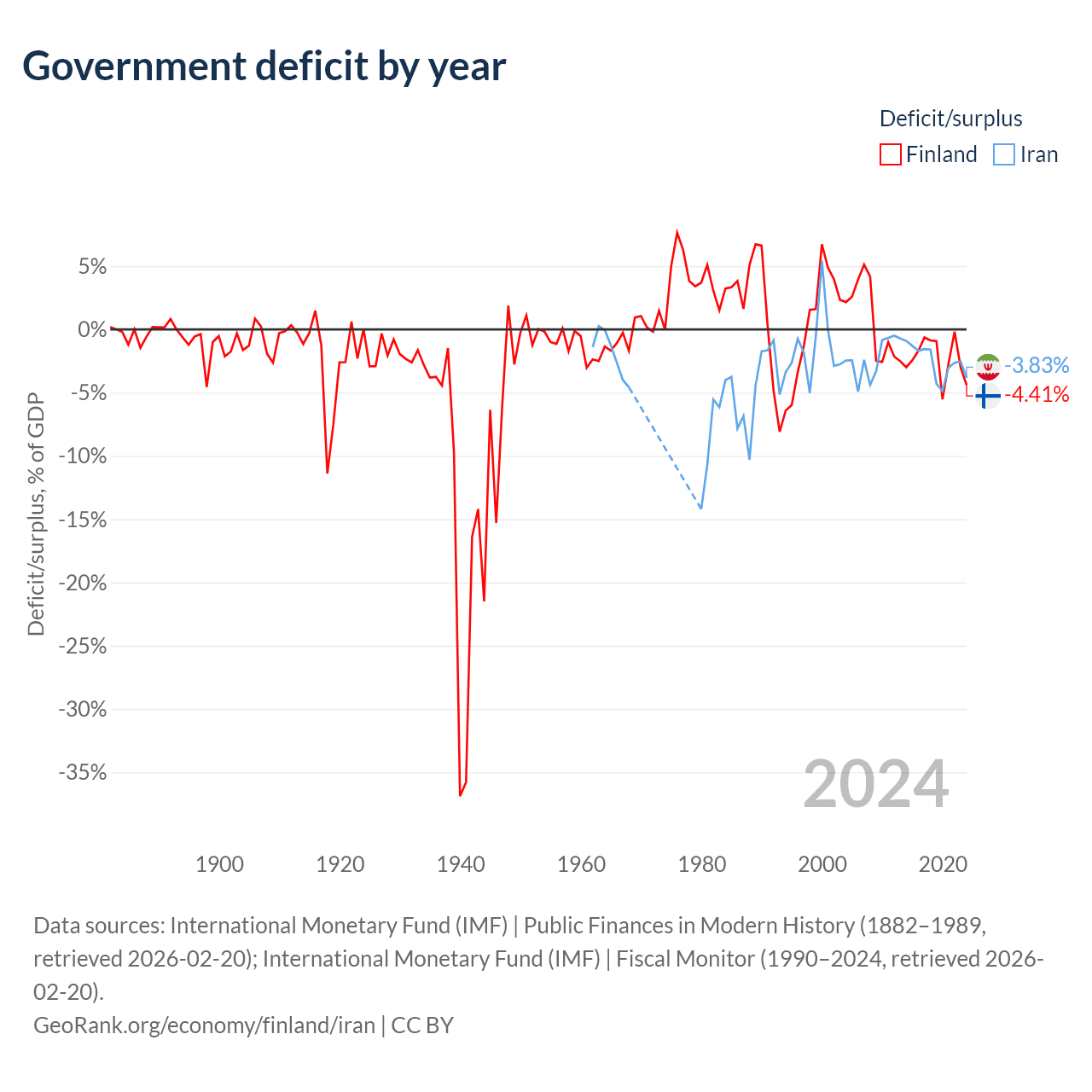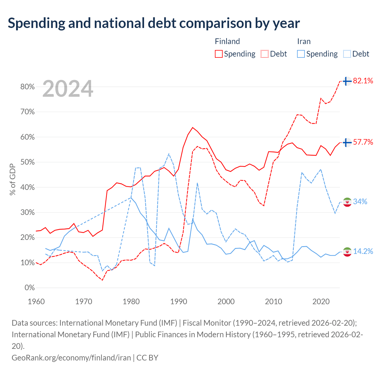 Finland has $245B in government debt (82.1% of GDP), compared to $162B (34% of GDP) in Iran.
