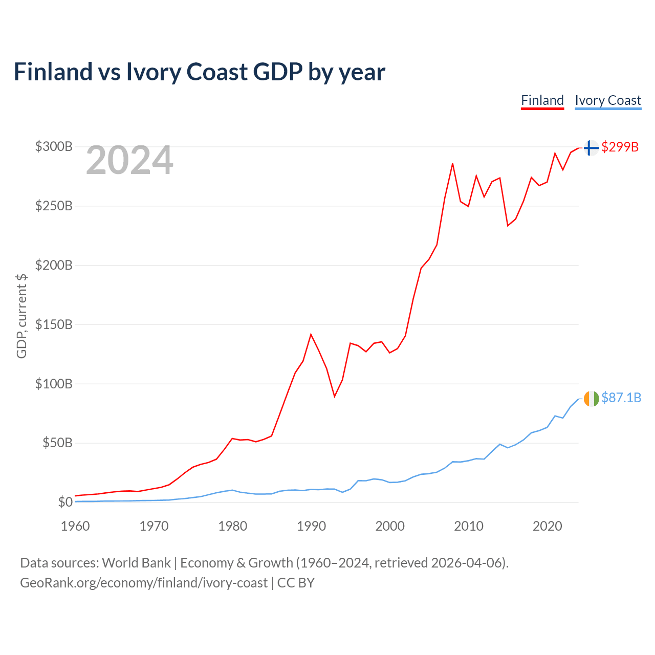 Finland vs Ivory Coast GDP by year