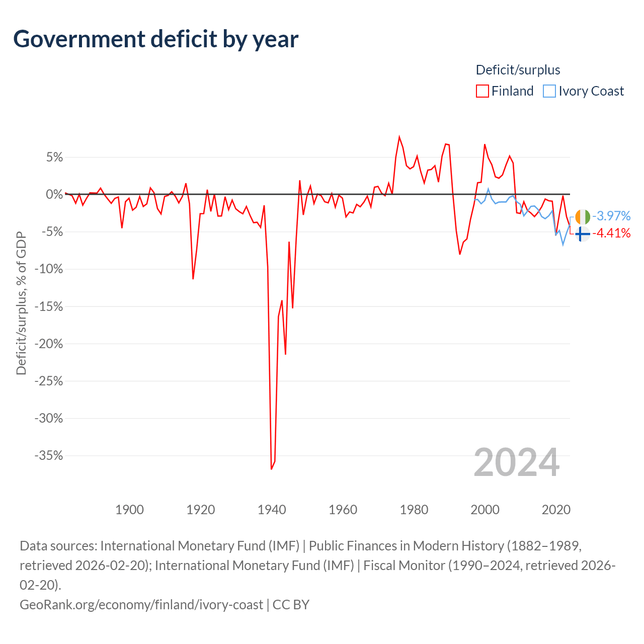 - International Monetary Fund (IMF) | Public Finances in Modern History (1882–1989, retrieved 2026-02-20)