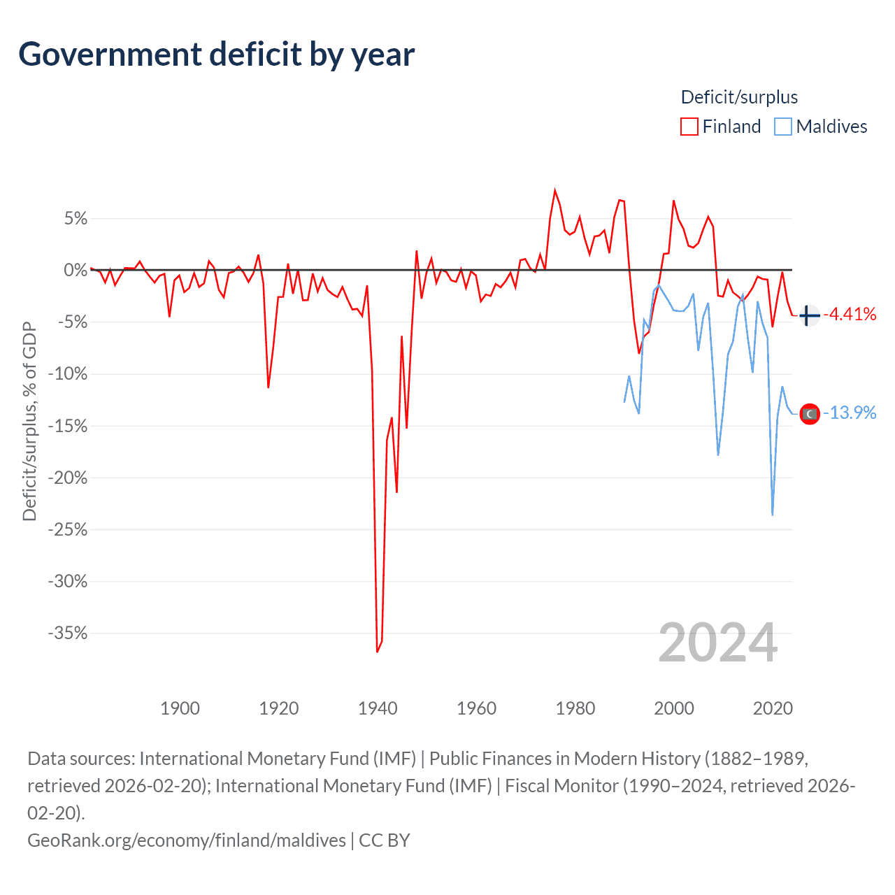 - International Monetary Fund (IMF) | Public Finances in Modern History (1882–1996, retrieved 2026-02-20)