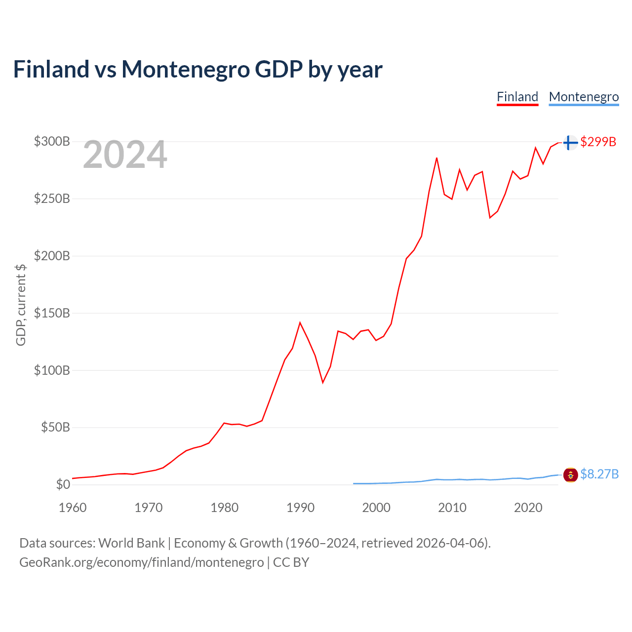 Finland vs Montenegro GDP by year