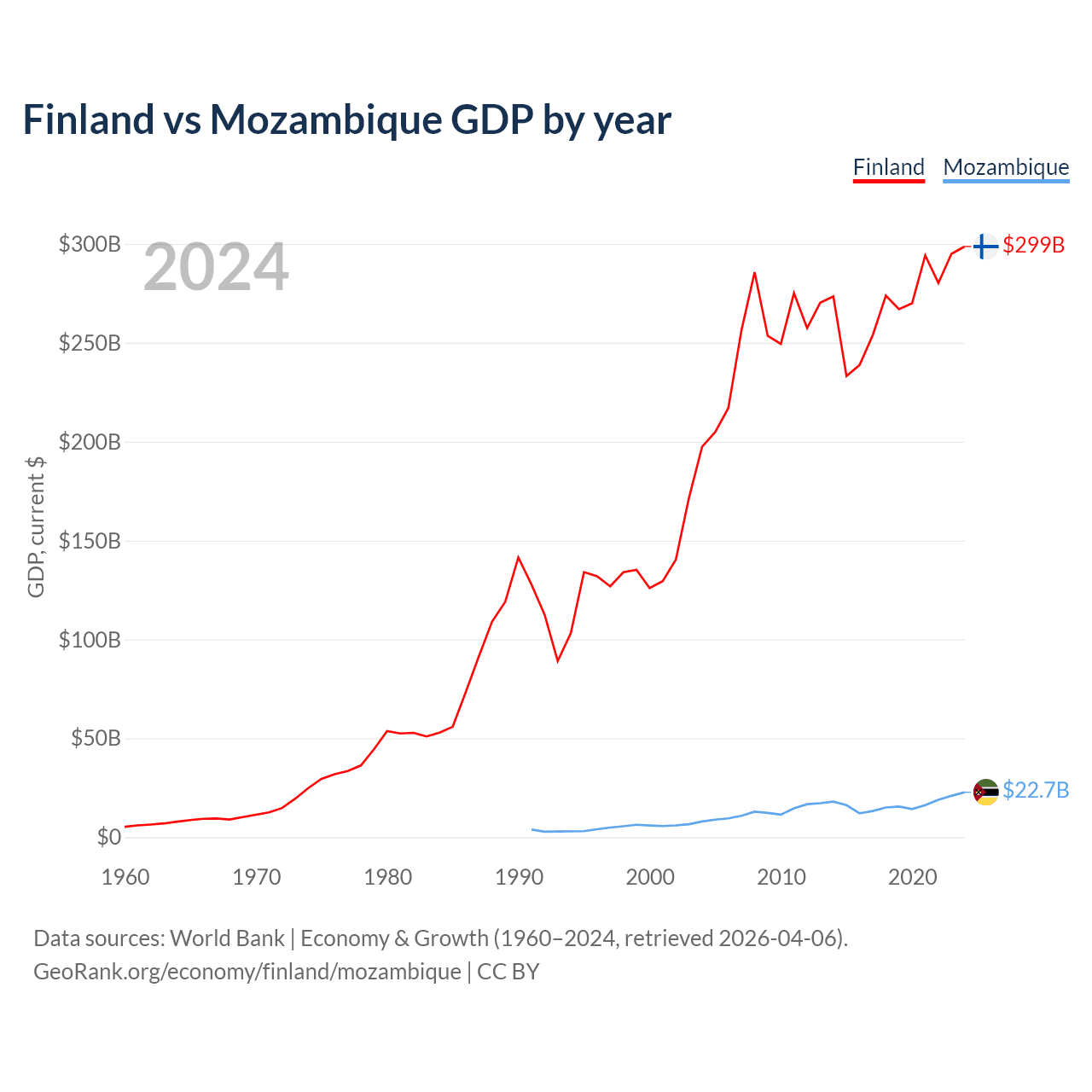 Finland vs Mozambique GDP by year