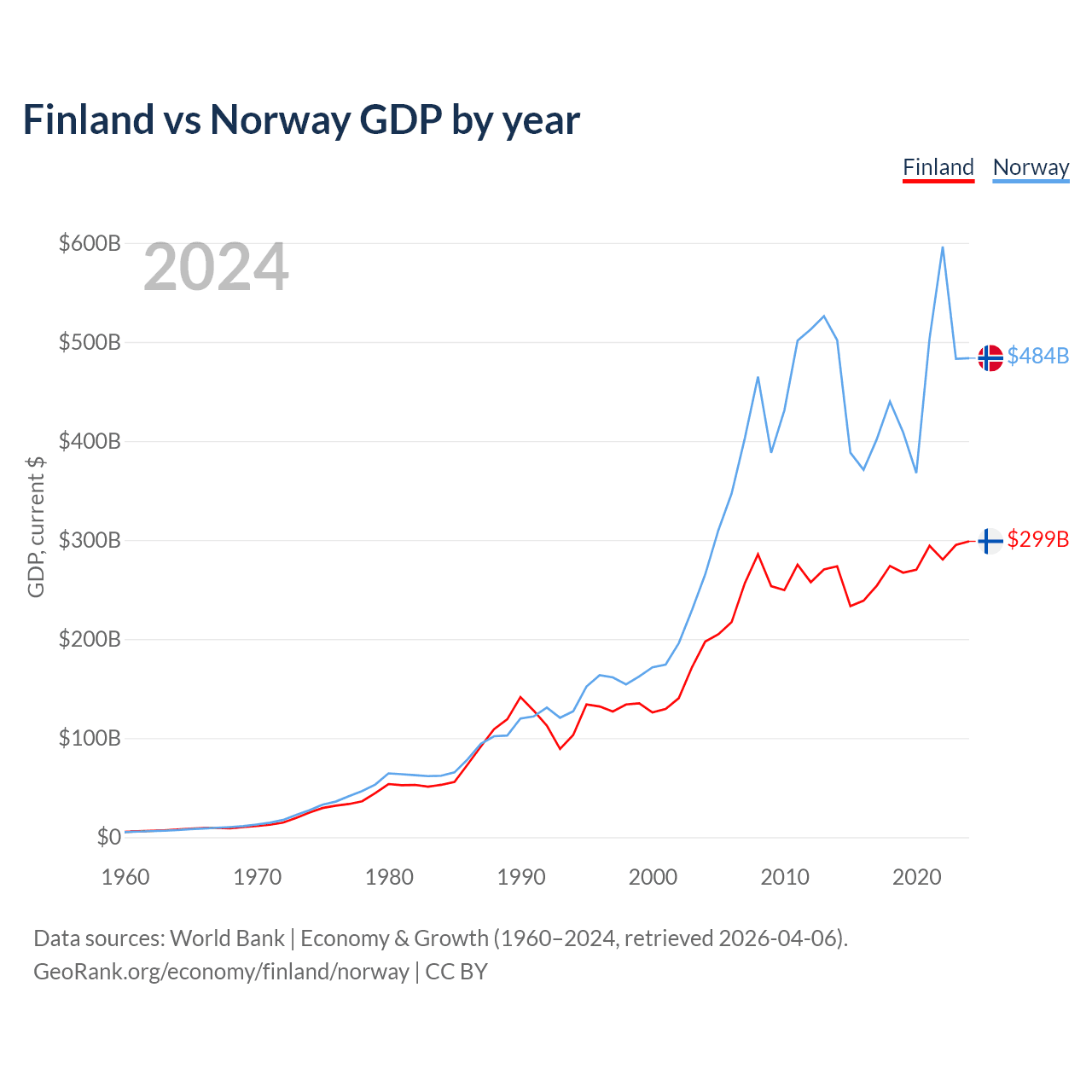 Finland vs Norway GDP by year