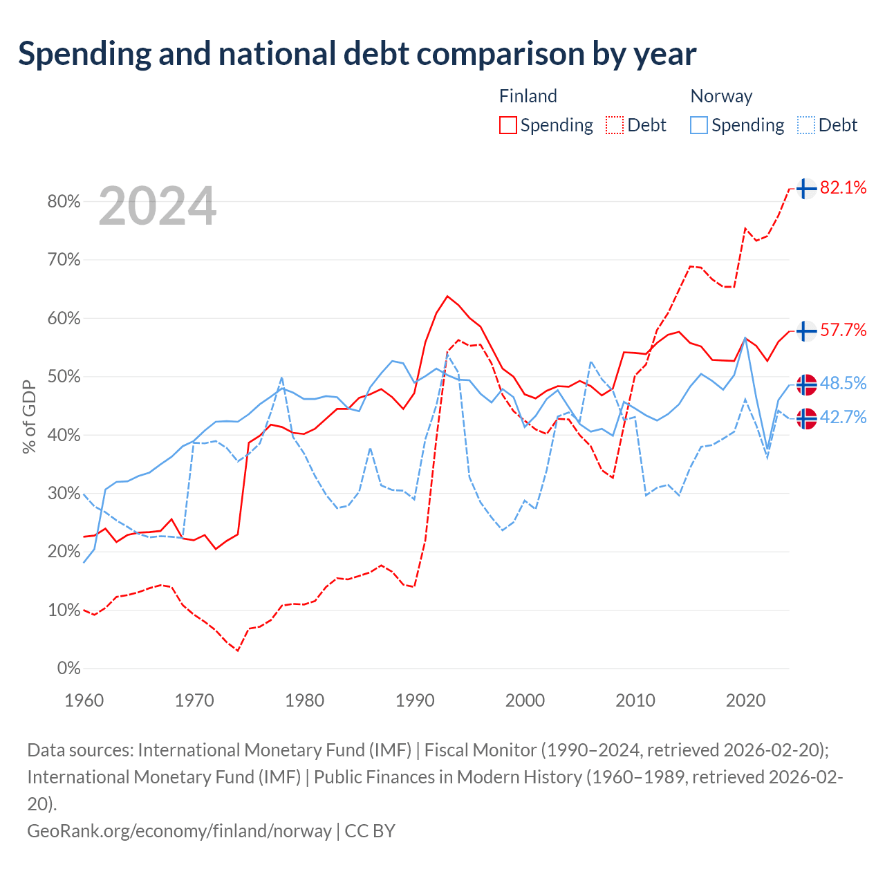 Finland has $245B in government debt (82.1% of GDP), compared to $207B (42.7% of GDP) in Norway.