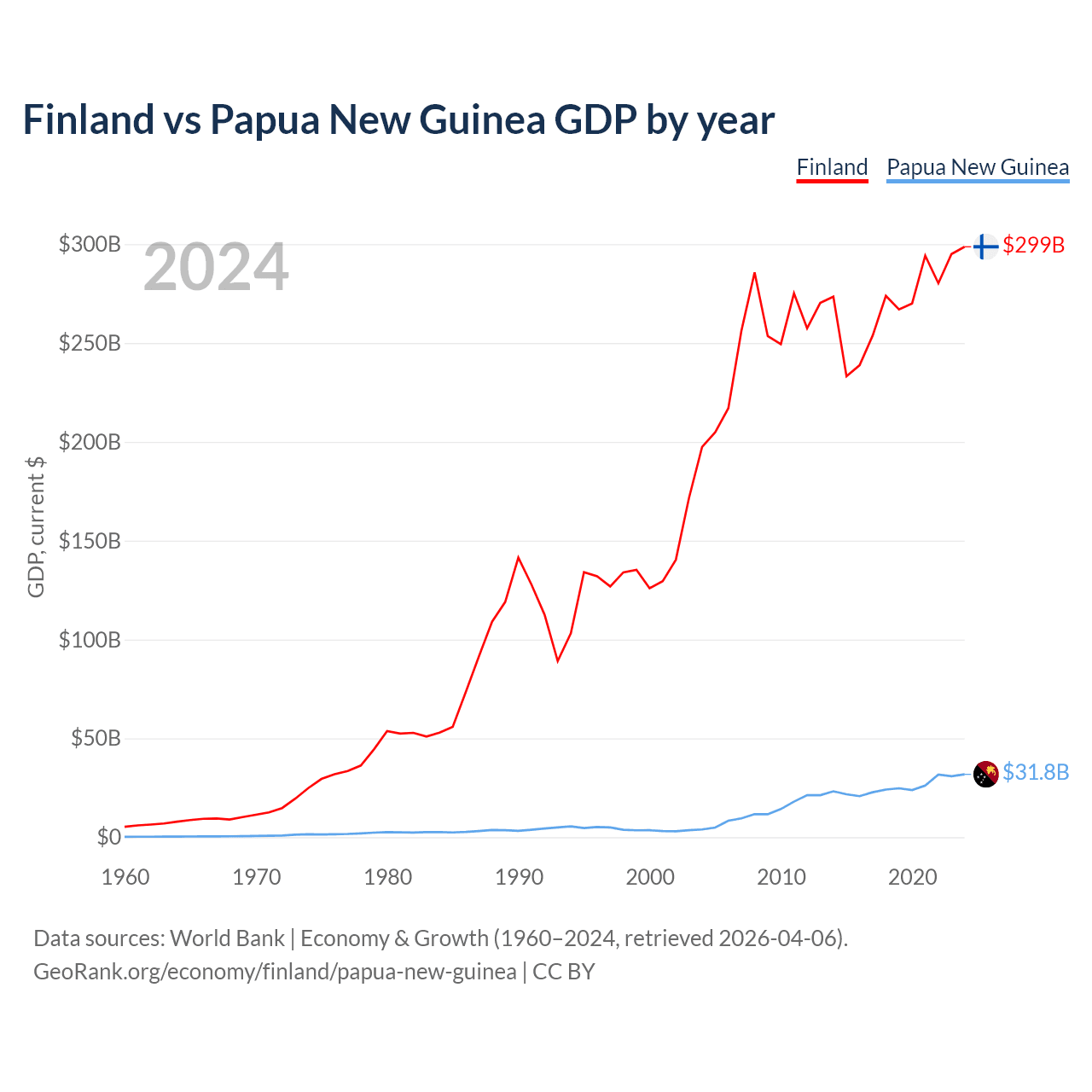 Finland vs Papua New Guinea GDP by year