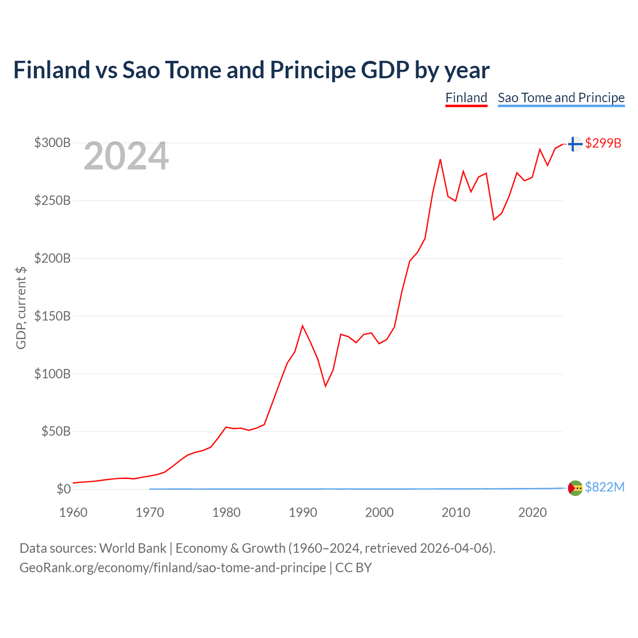 Finland vs Sao Tome and Principe GDP by year