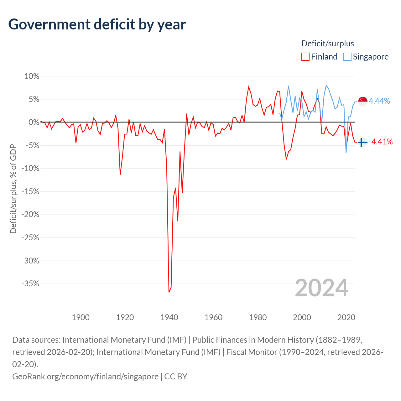 Finland has $245B in government debt (82.1% of GDP), compared to $950B (173.5% of GDP) in Singapore.