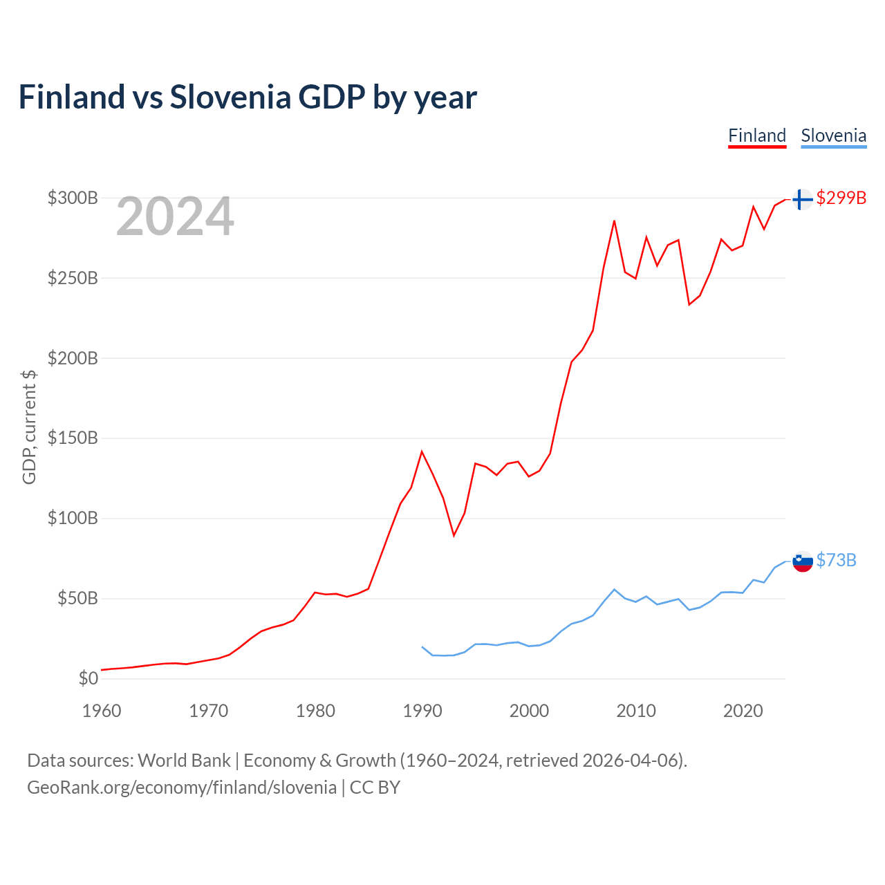 Finland vs Slovenia GDP by year