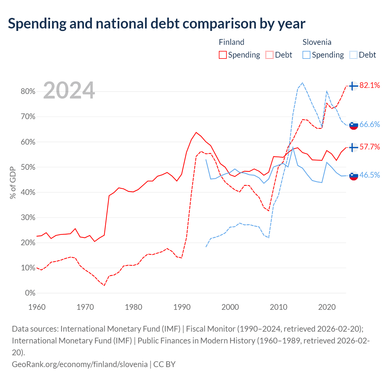 Finland has $245B in government debt (82.1% of GDP), compared to $48.6B (66.6% of GDP) in Slovenia.