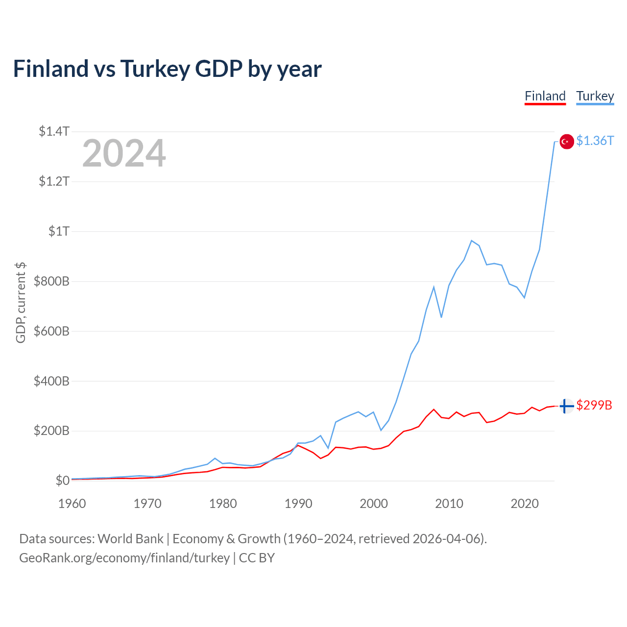 Finland vs Turkey GDP by year