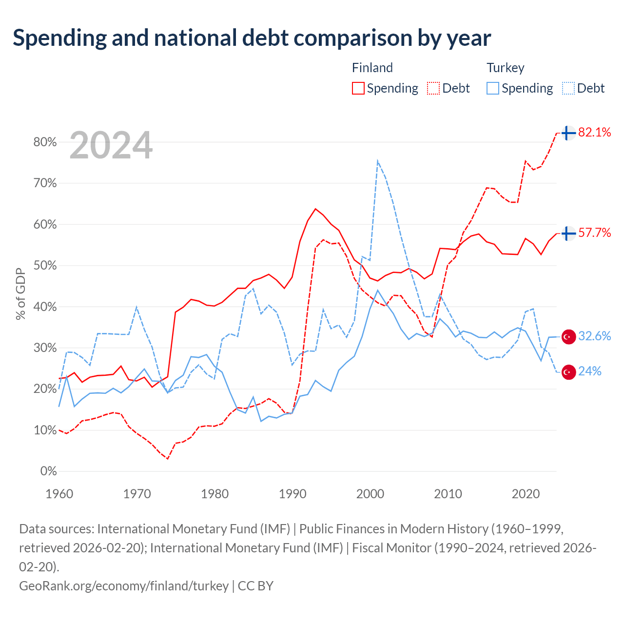 Finland has $245B in government debt (82.1% of GDP), compared to $327B (24% of GDP) in Turkey.