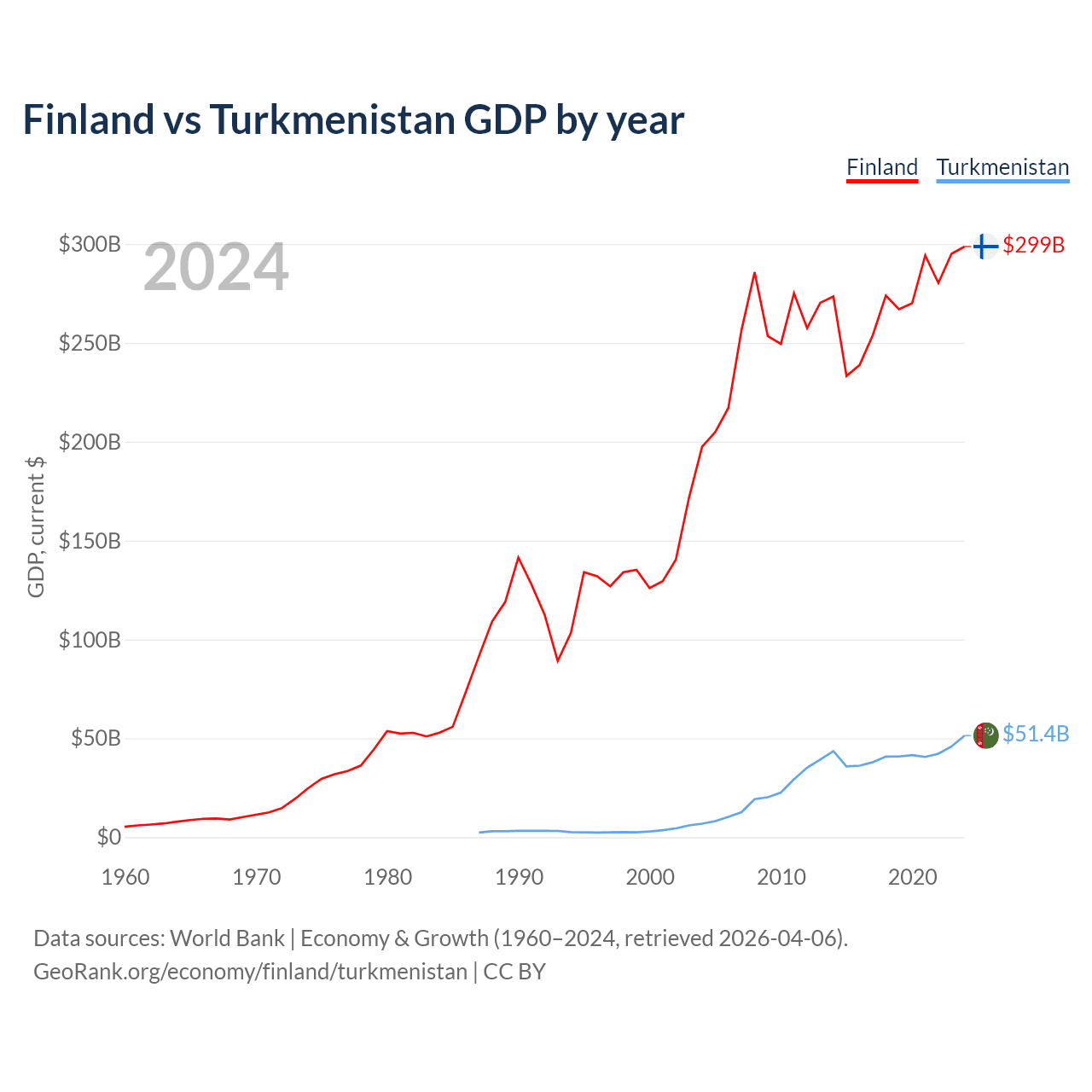 Finland vs Turkmenistan GDP by year