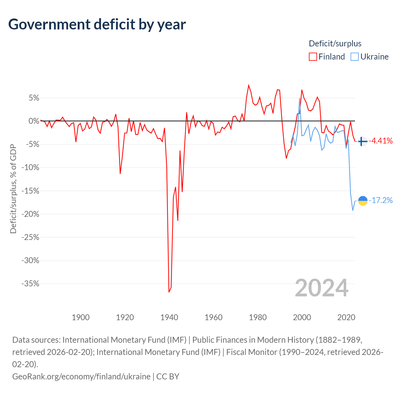 - International Monetary Fund (IMF) | Public Finances in Modern History (1882–1996, retrieved 2026-02-20)