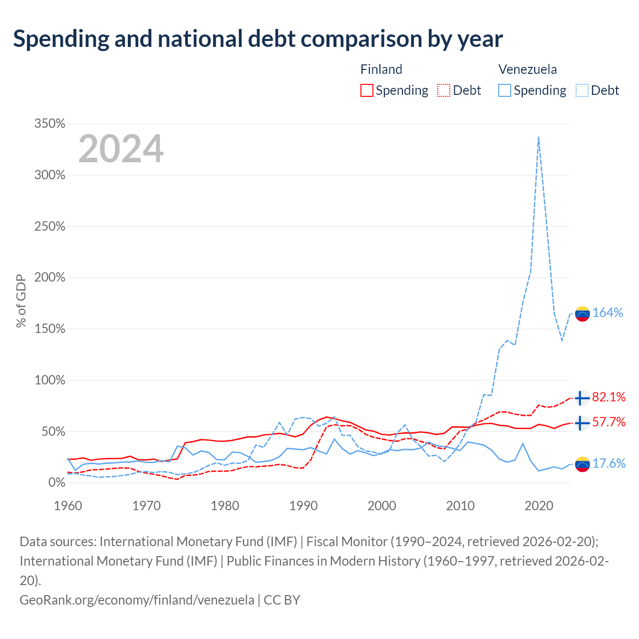 Finland has $245B in government debt (82.1% of GDP), compared to $197B (164.3% of GDP) in Venezuela.