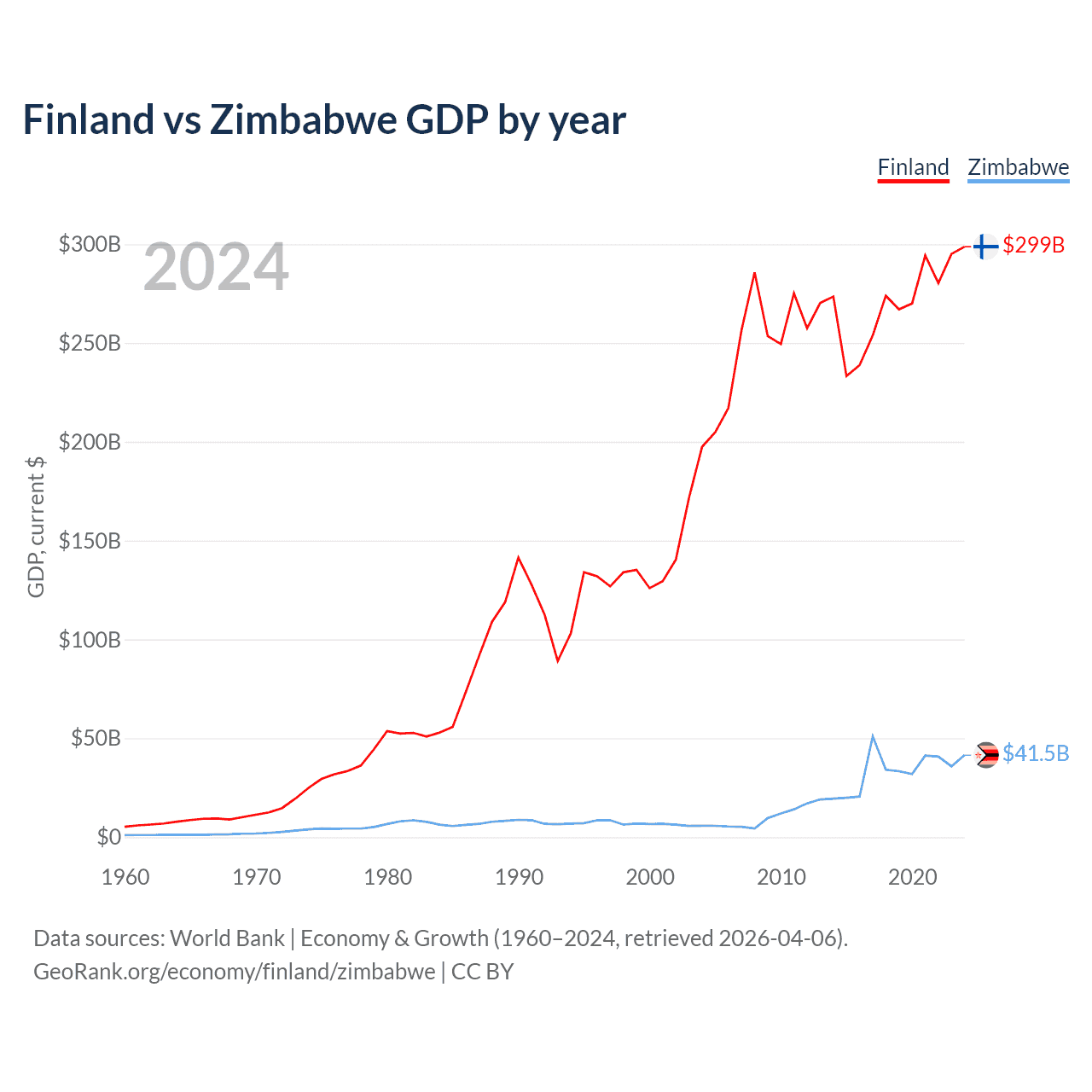 Finland vs Zimbabwe GDP by year