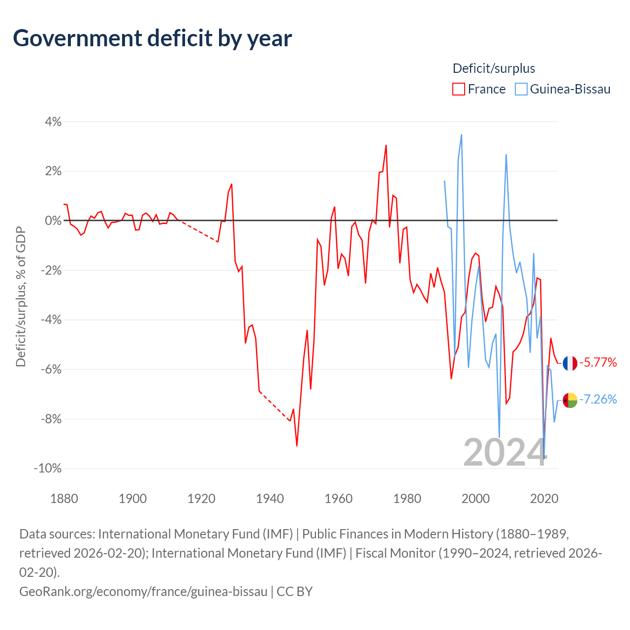 - International Monetary Fund (IMF) | Public Finances in Modern History (1880–1996, retrieved 2026-02-20)