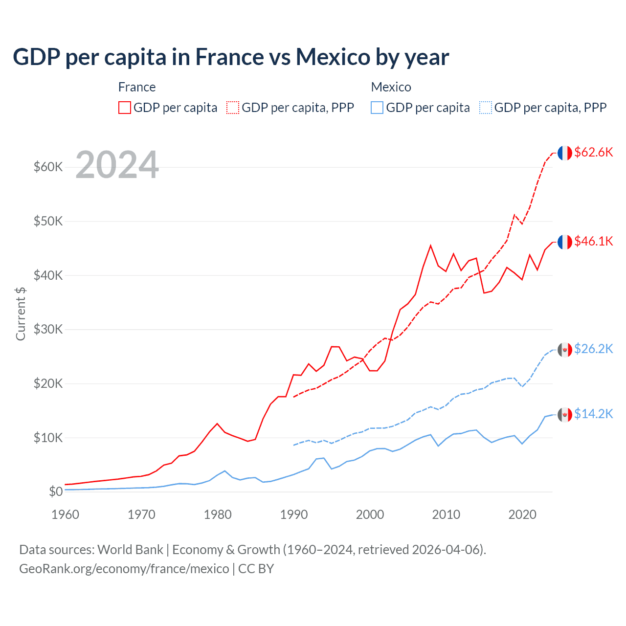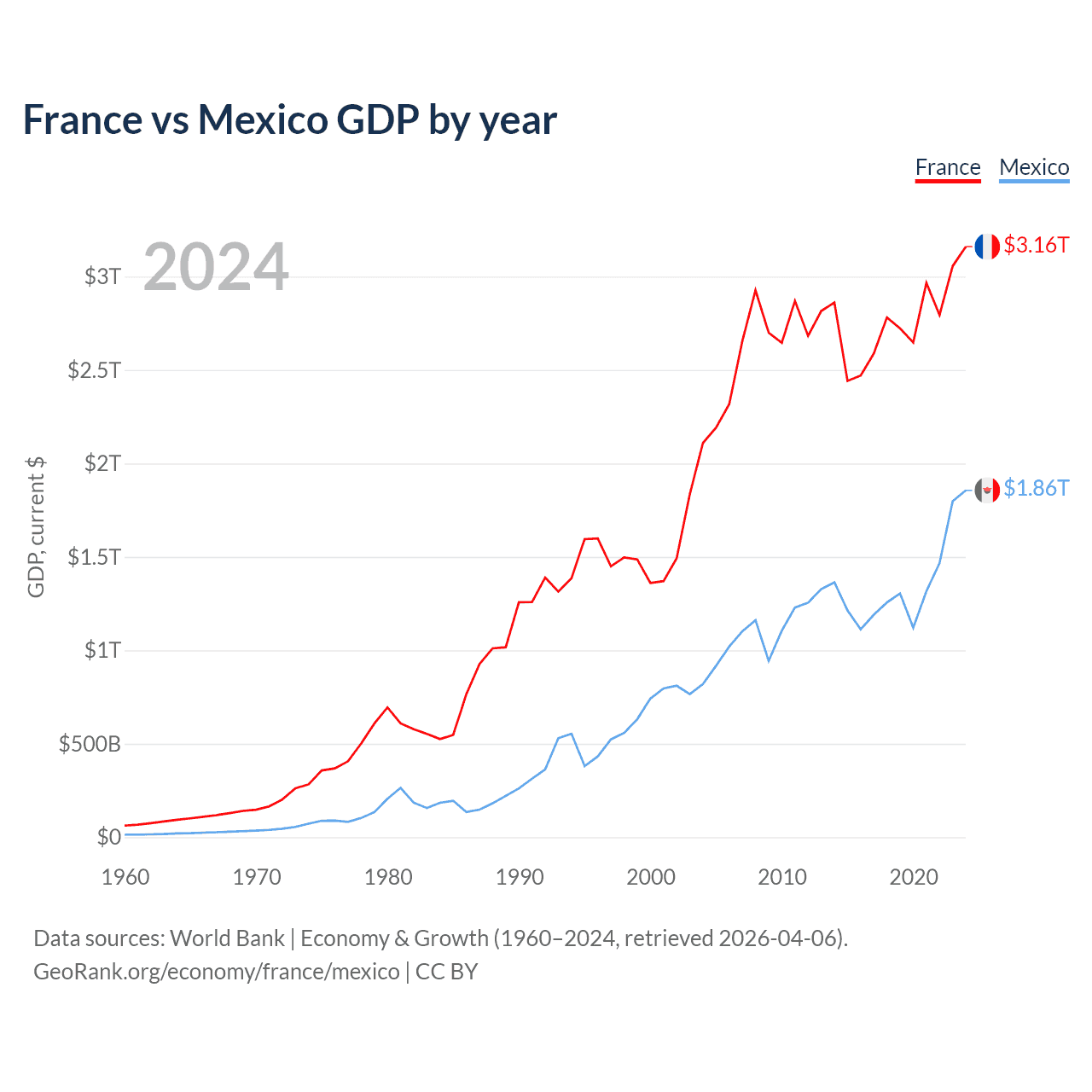 France vs Mexico GDP by year
